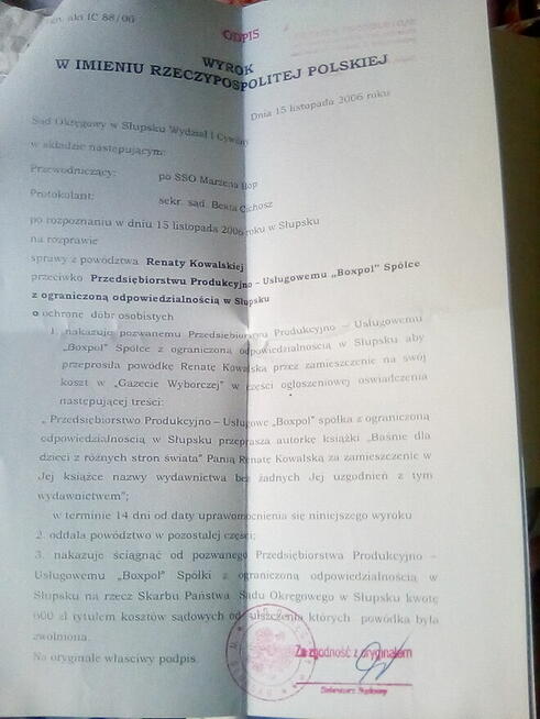 Informuję i oświadczam, że autorem i wydawcą książki "Baśnie dla dzieci z różnych stron świata" wyd. w Słupsku w ...