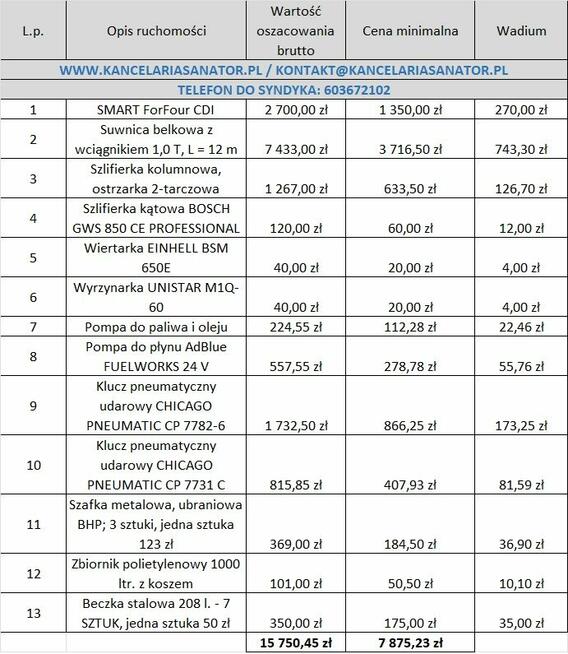 Syndyk masy upadłości osoby fizycznej nieprowadzącej działalności gospodarczej sprzeda ruchomości warsztatowe oraz ...