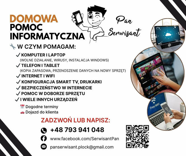 Oferuję domową pomoc informatyczną na terenie Płocka i okolic. Pomagam w codziennych sprawach związanych ze sprzętem ...